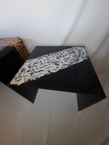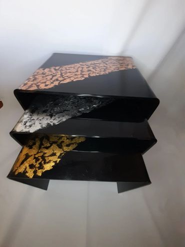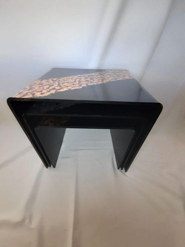 Versatile and stylish nest of three tables in Black with Metallic Highlights - the perfect finishing touch to any room. This set of tables can be a versatile finishing touch to any room. Mix N Match with your design scheme - minimal, modern or vintage, these handy little tables look right at home in any interior. Add them to living rooms, halls, bedrooms and home offices.